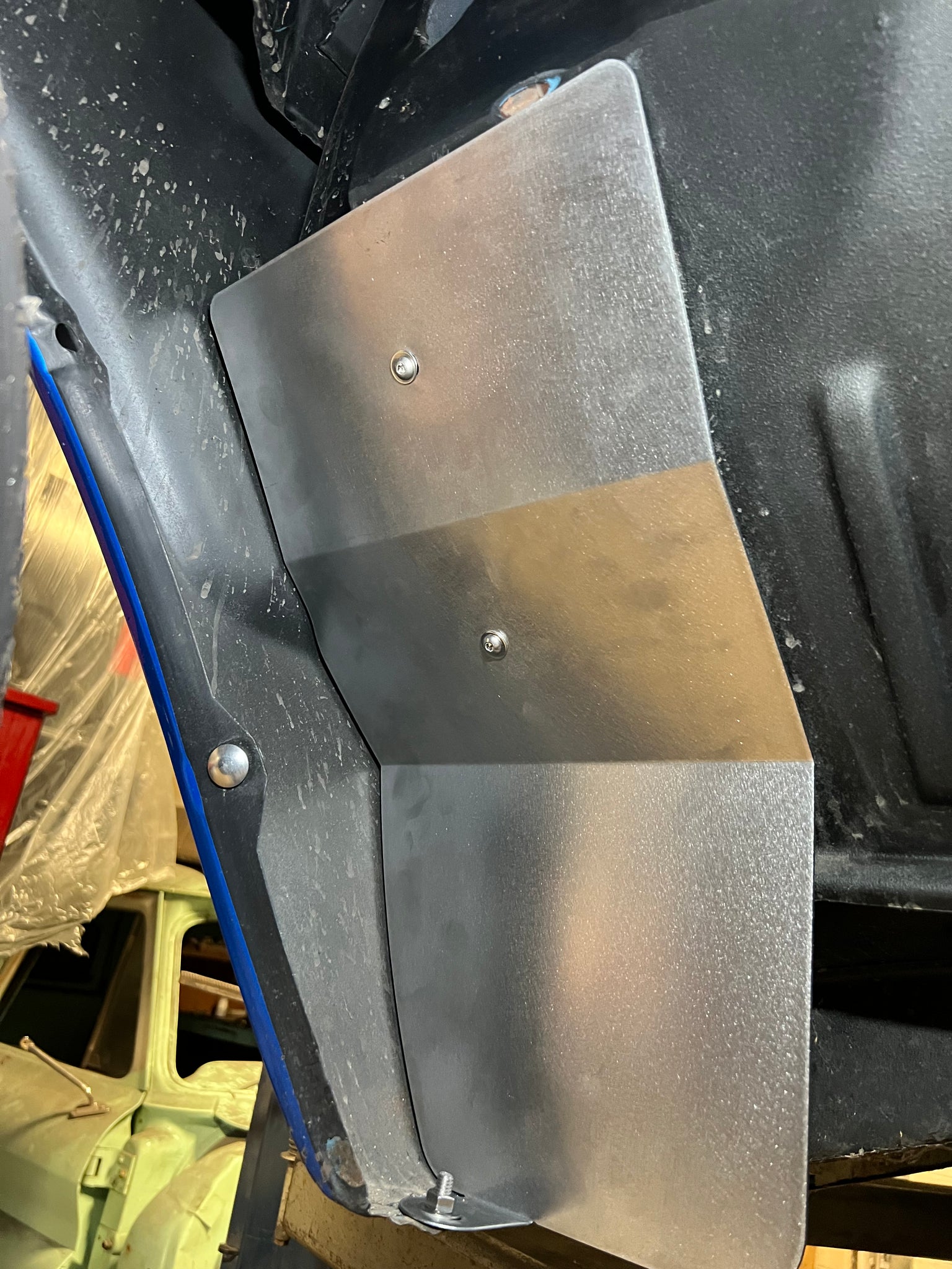 Clean up the look of your wheel wells from the outside using these filler panels. Simple bolt in installation behind the front tires of 67-72 C10 trucks using the original mounting hole on the fender and 2 drilled holes in the firewall pinch weld. Made of 18 gauge steel offered in raw finish only. Designed to be used with both our 20" and 22" inner fenders but also can be used with other options. Includes 1 pair of splash panels and 4 mounting bolts.